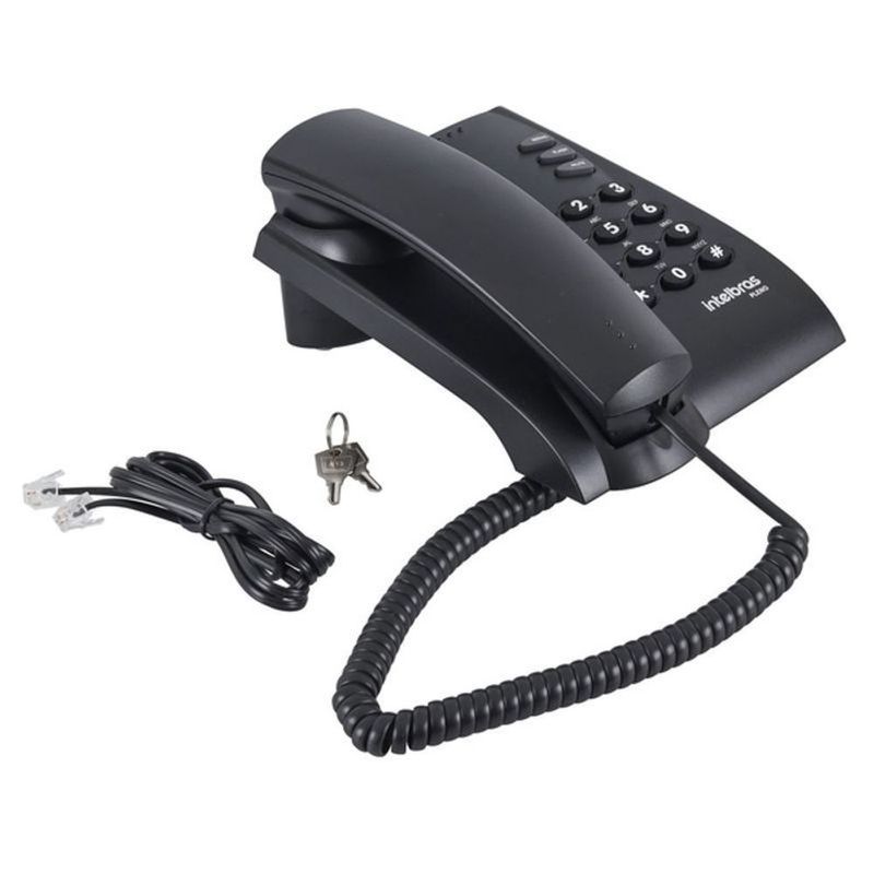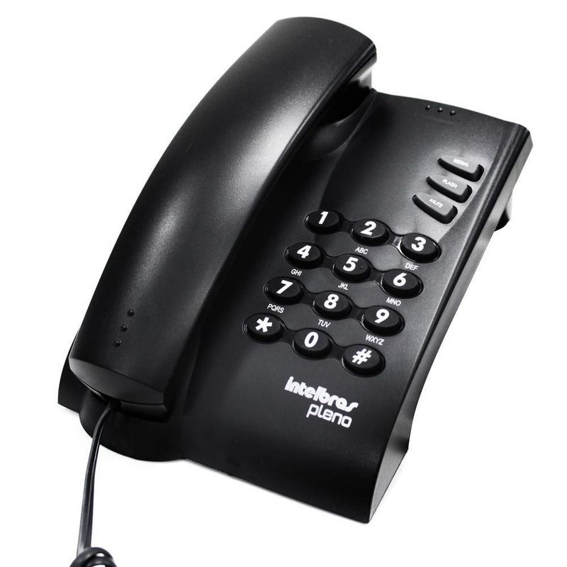 Telefone com Fio Intelbras Pleno Preto com Chave de Bloqueio e Funções Flash, Rediscagem e Mudo para Linha Analógica - Instalação em Mesa ou Parede